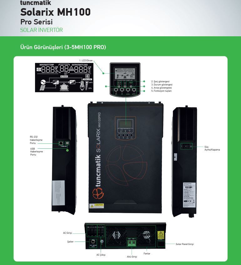 Tunçmatik Solarix MH100 Pro 3-5kW Akıllı İnverter