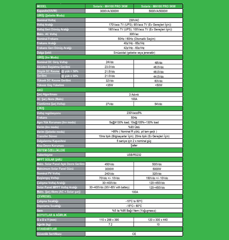 MODEL Solarix – MH100 PRO 3KW Solarix – MH100 PRO 5KW